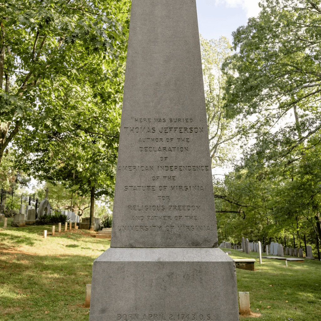 Located on the Monticello grounds, the cemetery contains the graves of Thomas Jefferson and numerous members of his family. Jefferson himself designed the obelisk monument marking his grave, which bears an inscription listing the achievements he considered most important: